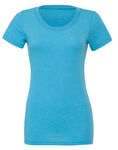 Lightweight and extra soft, this tee is perfect. 4.5-ounce (153 GSM) 50/25/25 polyester/combed ring spun cotton/rayon, 32 singles 1X1 rib knit neck Shoulder to shoulder taping Tear-away label Tri-Blend fabric infuses each garment with unique character. Please allow for slight color variations. Due to the heat sensitivity of tri-blend fabrics, special care must be taken throughout the printing process. Consult your decorator or ink supplier for best printing practices.
